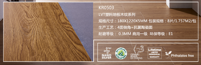 耐磨等級:0.3MM商用一級 環保等級:E1